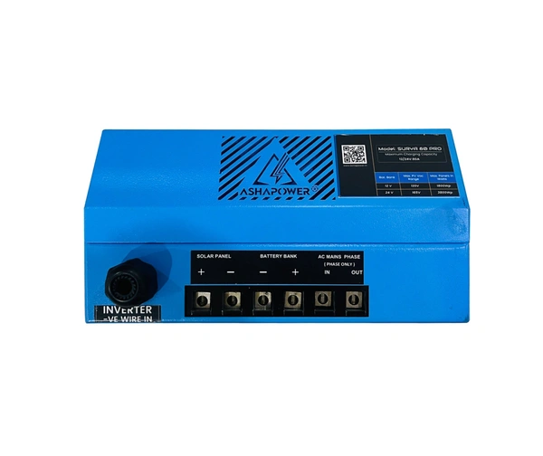 The ASHAPOWER SURYA-80 Pro Solar MPPT Charge Controller is designed to charge both 12V and 24V batteries with automatic battery bank detection and configuration. It supports all popular solar panels such as Polycrystalline, Monocrystalline, Half-Cut Mono PERCand Topcon, making it highly versatile. With its wide PV input Voc range, more panels can be connected in series, ensuring flexible and simplified installation. The SURYA-80 Pro also comes with advanced features like separate current control for batteries and load, unit (kWh)-based solar-to-grid changeover, and a battery rescue charging function for deeply discharged LiFePO₄ batteries. It is fully compatible with Lead-acid, VRLA, Gel, and Lithium batteries equipped with a good BMS and Active Balancer.