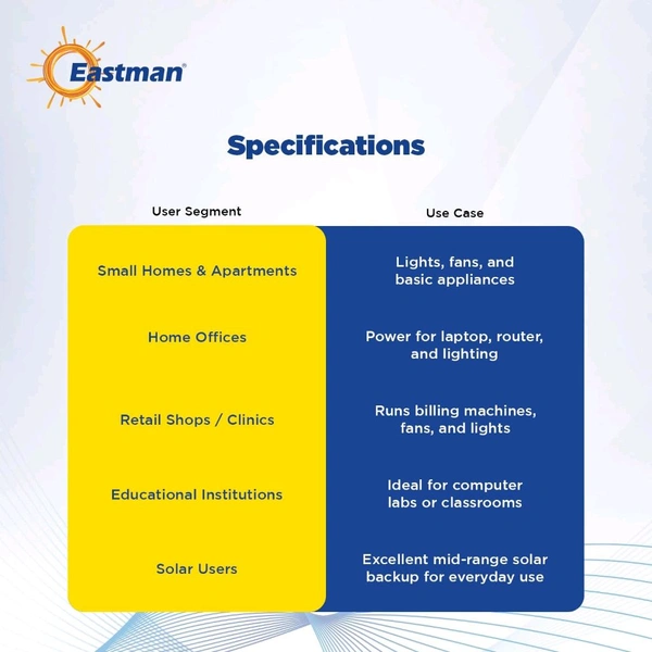 Eastman Smart Max 1400 12V 1000VA MPPT Solar Pure Sine Wave PCU Comes with Great Exciting Features: