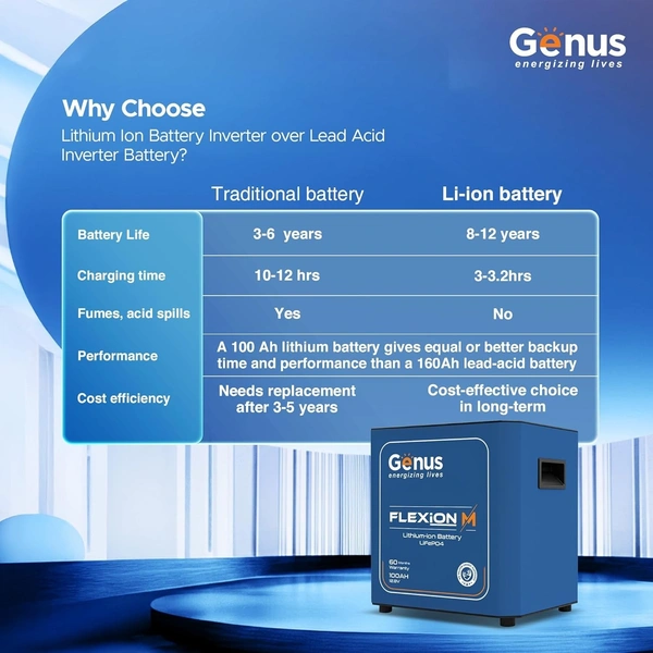 Looking for a reliable, long-lasting, and efficient battery to meet your energy needs? The Genus Flexion-M 12.8V 100Ah LifePO4 Battery, available exclusively at Aastha Mart, is the perfect choice for powering your home, office, or any essential appliances. Designed with advanced lithium iron phosphate (LiFePO4) technology and backed by a 5-year warranty, this battery ensures exceptional performance and peace of mind.